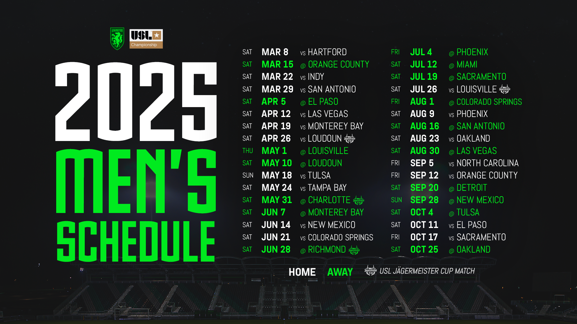 Usl Championship 2025 Schedule. USL Championship and Monterey Bay Football Club unveil 2025 schedule Salinas Valley Tribune Note: The schedule displays fixtures as Home team vs Away team Sync to Calendar Full Schedule; USL Jägermeister Cup Schedule; Regular Season Schedule; This website is powered by SportsEngine's Sports Relationship Management (SRM) software, but is owned by and subject to the USL Championship. The 2025 USL Championship season will be the second in the league's four-year broadcast agreement with CBS Sports following a league-record USL Championship Final broadcast that earned 431,000 viewers on the CBS Television Network